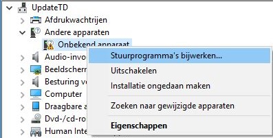 Onlangs is er een update van Windows 10 geweest. Dit kan tot gevolg hebben dat de standaard Windows drivers niet meer goed werken. De oplossing is dan om deze handmatig weer goed toe te wijzen. Volg daarvoor deze stappen