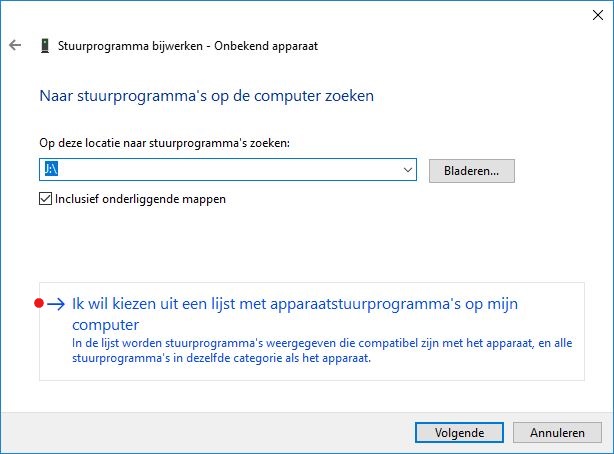 6. Kies "Ik wil kiezen uit een lijst met apparaatstuurprogramma's op mijn computer"