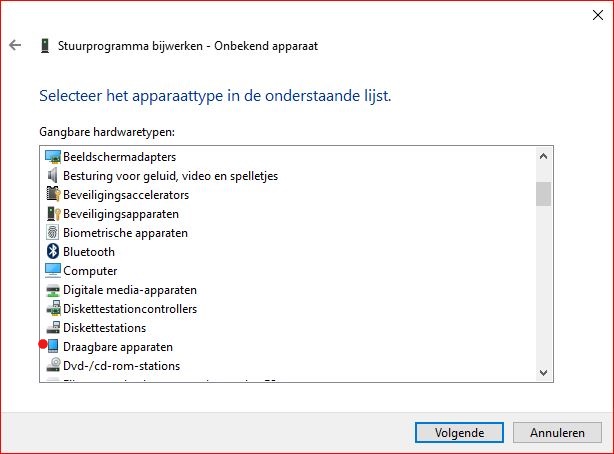 7. Selecteer "Draagbare apparaten" en klik "Volgende"